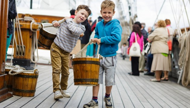 “Designed to captivate children and it works: play games, stamp your passport, take quizzes, and climb inside the sailors’ berths.”