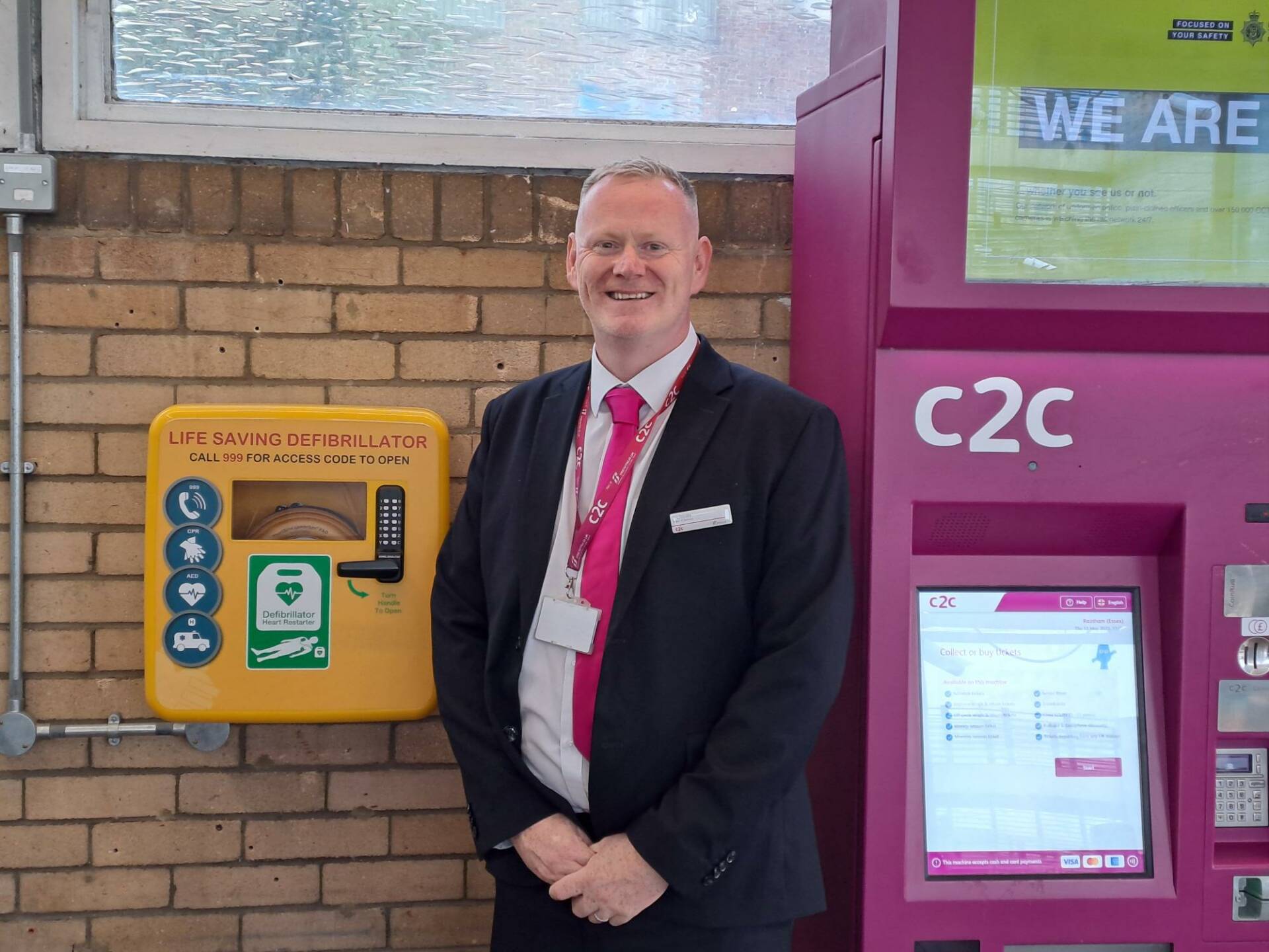 “I am pleased to be able to help raise awareness of the fact that there is a potentially life-saving defibrillator at each of c2c’s stations.